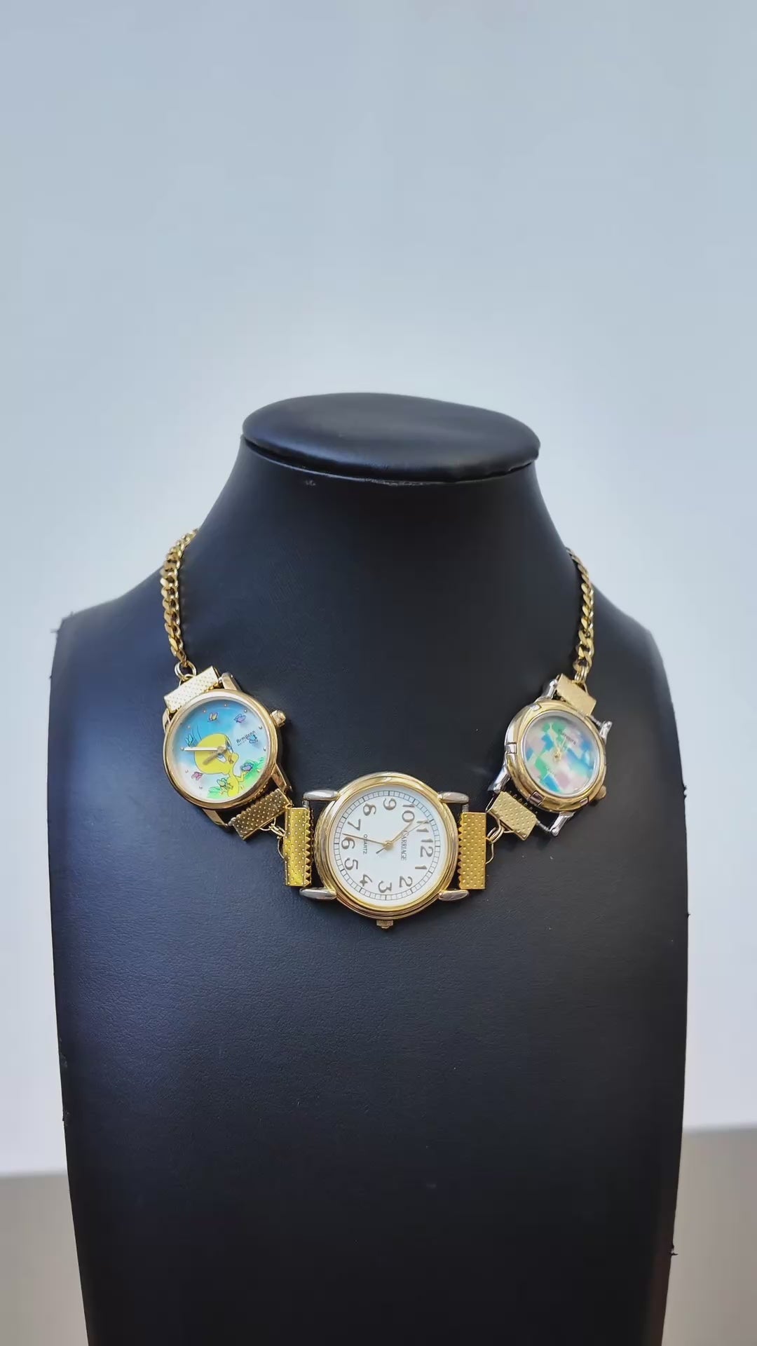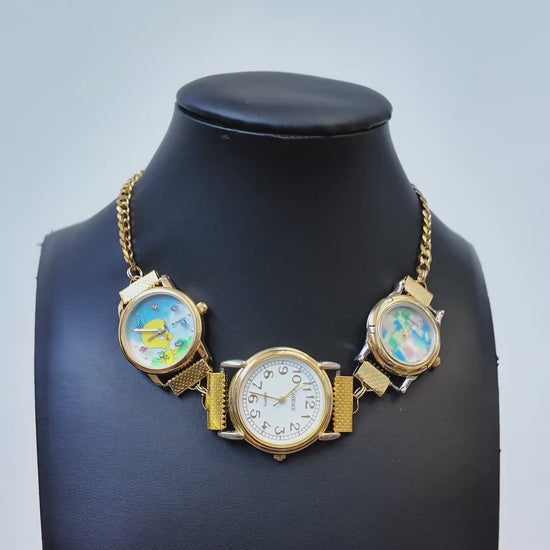 One of a kind handmade watch necklace featuring a tweedy bird and watch face.