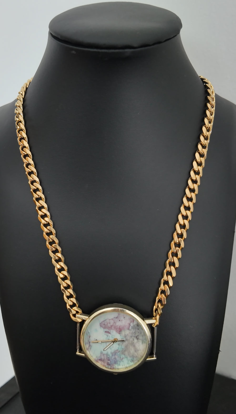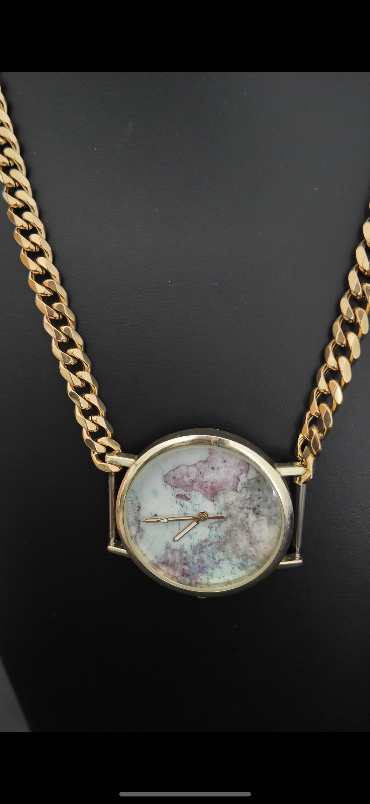 1 of 1 Gold Watch Chain Uniquely Upcycled for You by Alyx ☆ features a unique watch face with the a map of the world