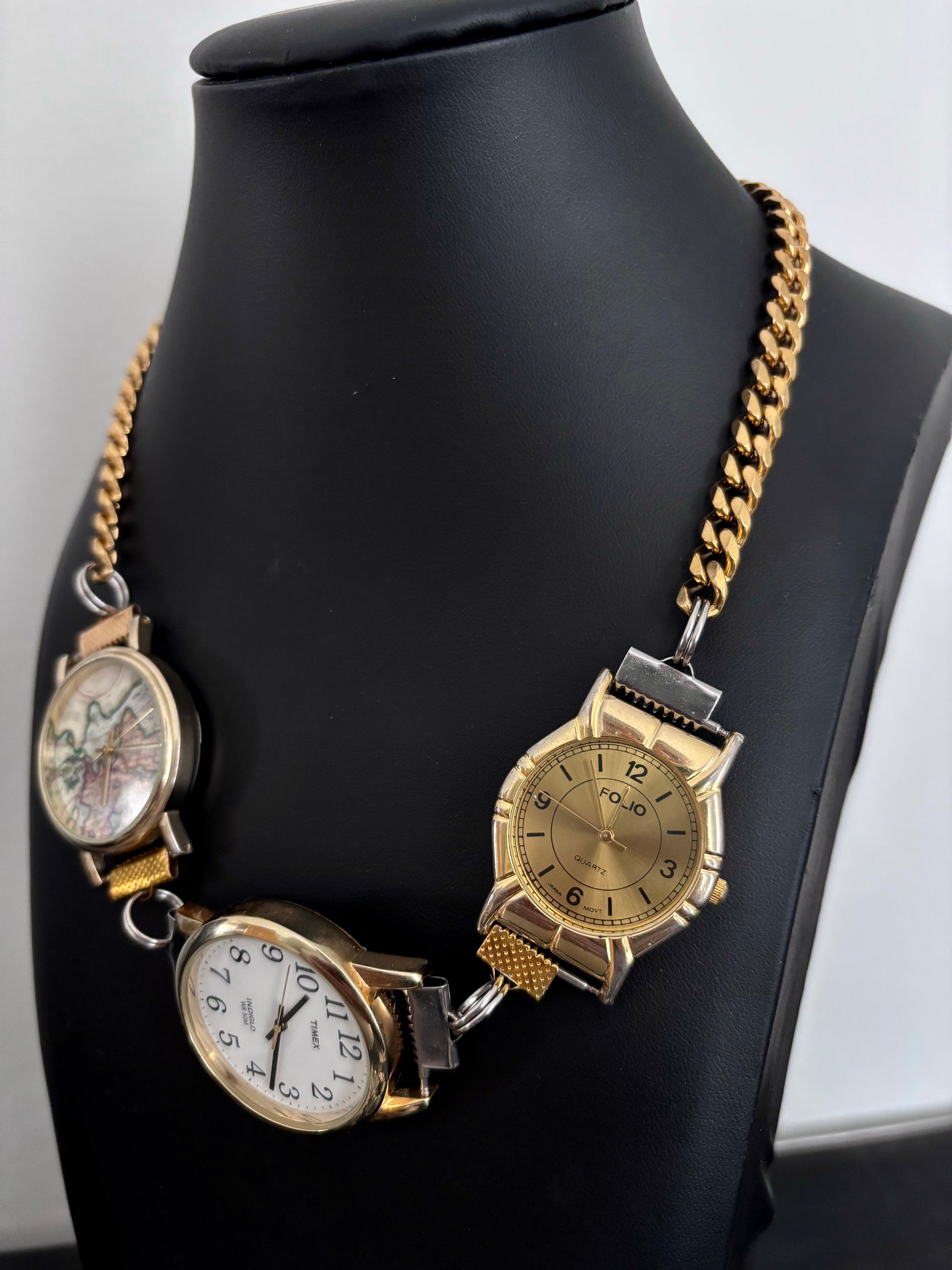 Uniquely Upcycled for You by Alyx ☆ one of a kind watch necklace featuring 3 unique watch faces and a gold chain